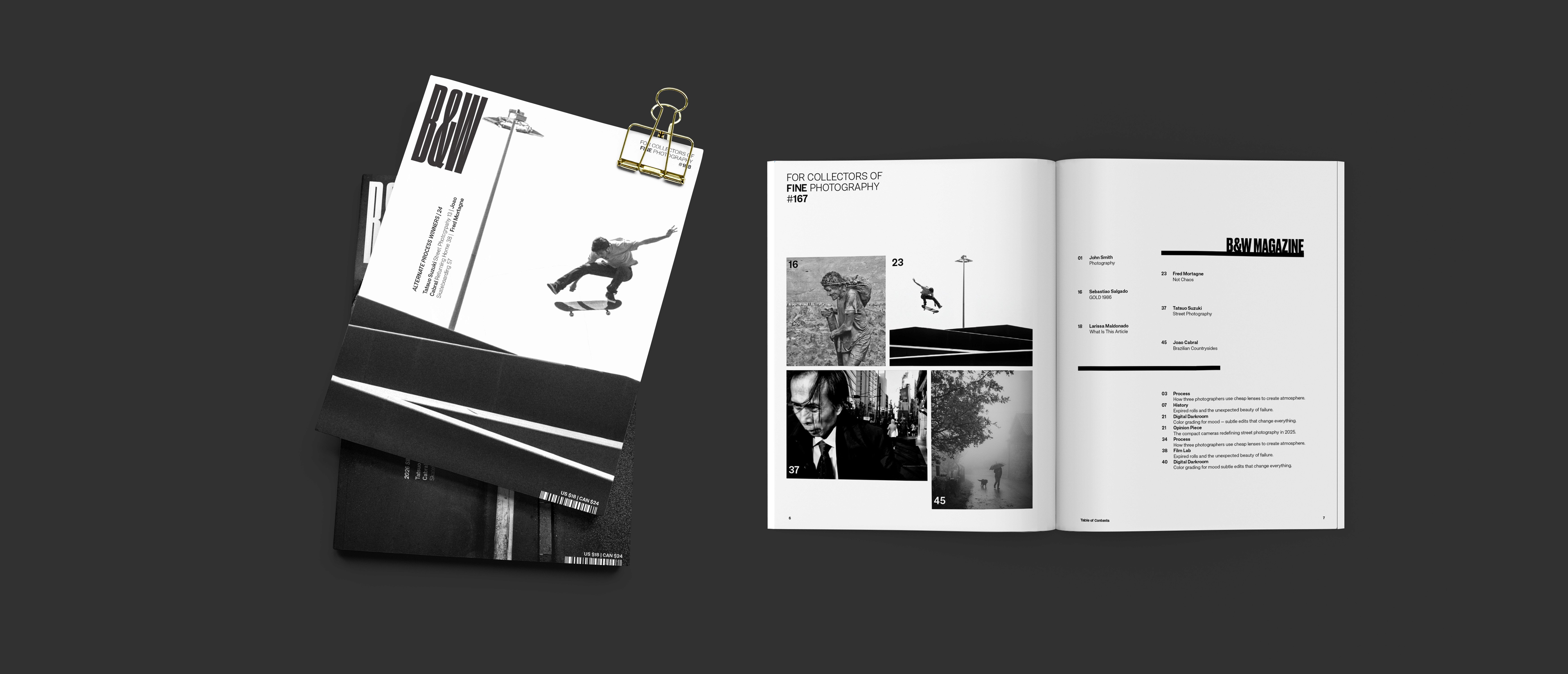 B&W Photography Magazine had existed in a design gutter for a long time. This redesign brings it back to life and does justice to the classic yet edgy nature of black and white photography.